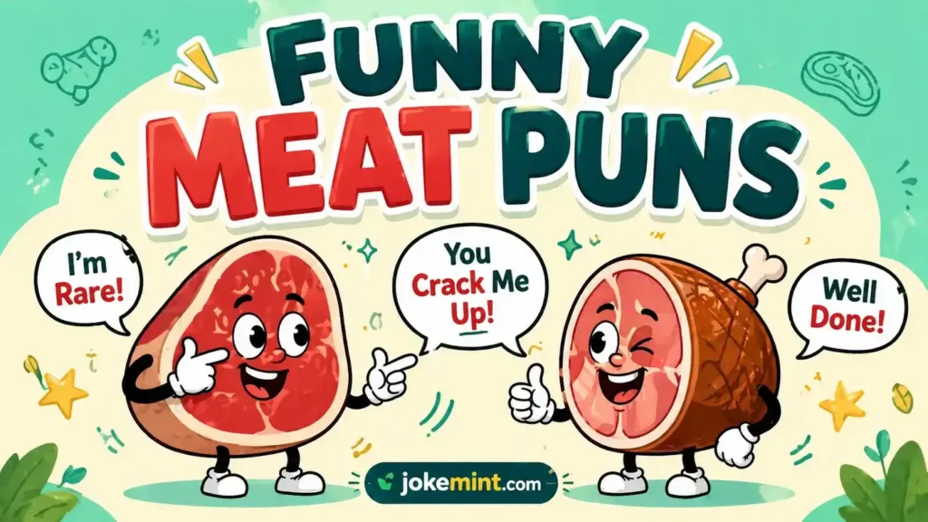 Meat Puns bring humor romance and food fun together in a way that feels natural and easy to share. From steak jokes to crispy bacon laughs every line adds flavor to your day. Share these humor with friends or on social media and let the laughter sizzle.